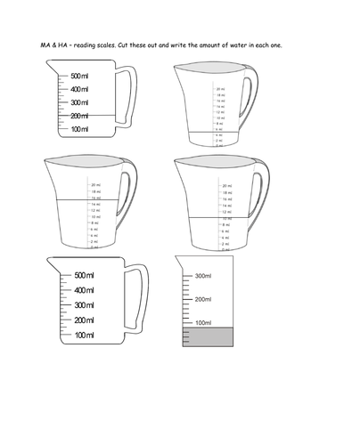 Capacity worksheets on reading scales | Teaching Resources