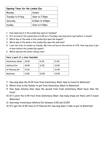 Reading A Timetable Worksheet. You can also print the worksheets for more practice. Once you find your worksheet, click on pop-out icon or print icon to worksheet to print or download.