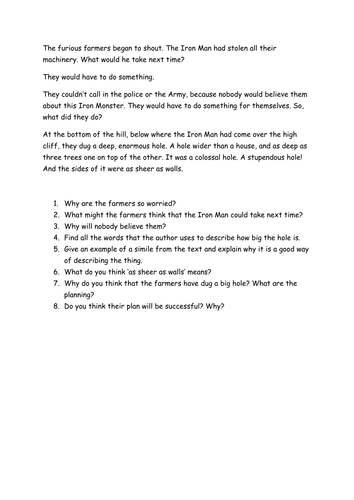 Using the assessment without levels for reading that I have collated, I have put together four comprehension sheets that ask children to infer and deduct and find meaning within the text, giving their own opinions with evidence.