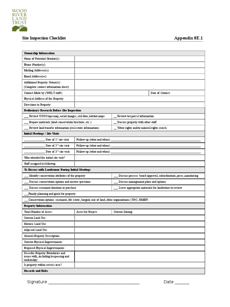 Appendix8E1 Site Inspection Checklist | Real Estate ...
